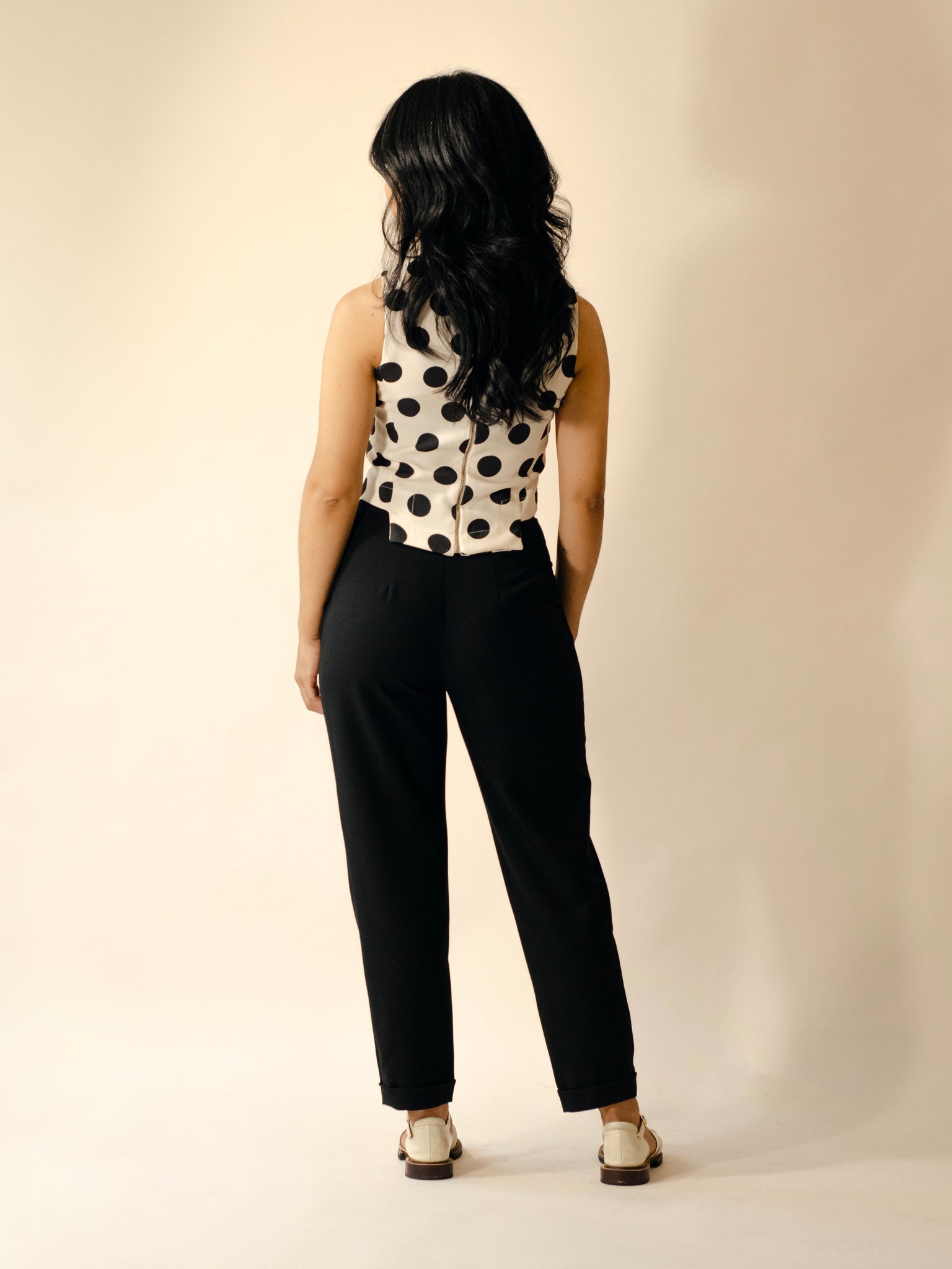 Feita pela primeira vez em 2018, a nossa calça lindy já passou por momentos e momentos! Nesta nossa edição de 2025, melhoramos questões como o caimento dos bolsos e das pregas (que para algumas pessoas ficavam bem volumosas na parte da frente), boca da calça um pouco mais solta para não prender na panturrilha, gancho mais confortável e tecido de gramatura média com viscose na composição, permitindo que haja a troca de temperatura com o ambiente, sendo perfeita pra usar desde em dias de clima mais ameno até dias mais quentes! Amamos essa peça e foi um prazer repensar a modelagem e o design dessa calça que continua nos nossos corações depois de tanto tempo, provando o real significado da palavra “atemporal”❤